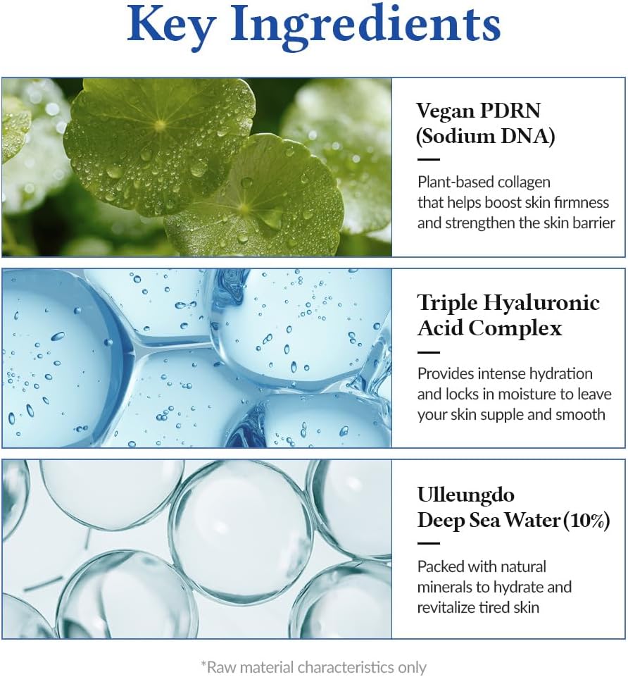 A vegan mist infused with vegan PDRN and 10% deep sea water that leaves your skin deeply hydrated with a fresh, bouncy jelly glow.