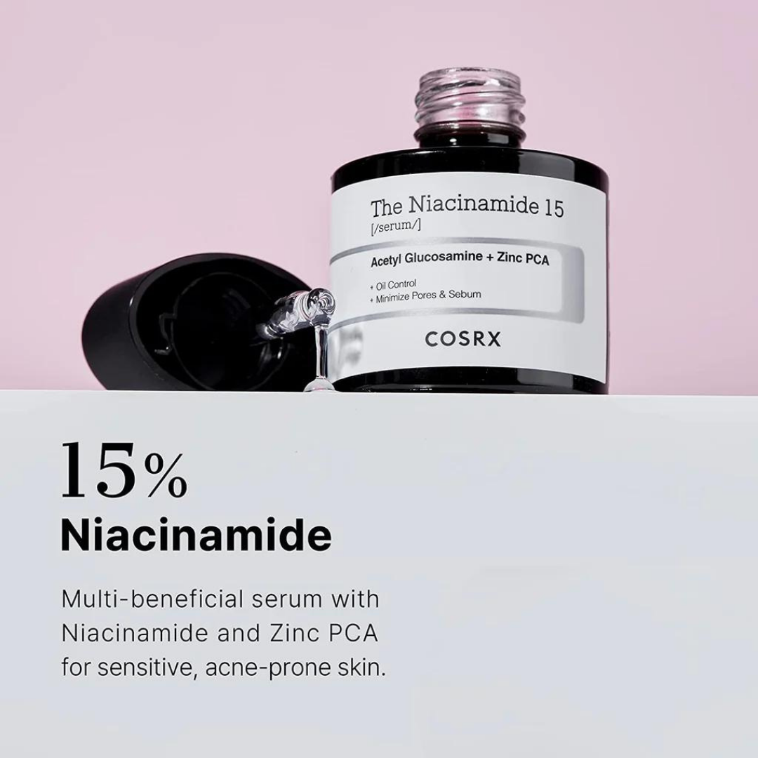 COSRX The Niacinamide 15 Serum, a targeted solution meticulously crafted to address the needs of acne-prone skin. With a robust concentration of 15% niacinamide, this serum stands as a powerhouse against acne-related concerns, working synergistically with carefully selected ingredients to promote a clearer, healthier complexion.
